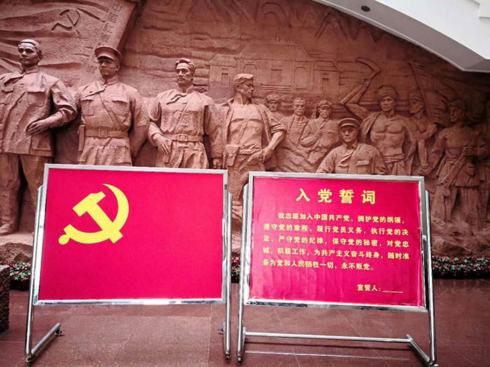 在紀(jì)念館內(nèi),全體黨員面對(duì)黨旗,再次鏗鏘有力地舉臂握拳,莊嚴(yán)宣誓,重溫入黨誓詞,堅(jiān)定理想信念,弘揚(yáng)革命意志。
