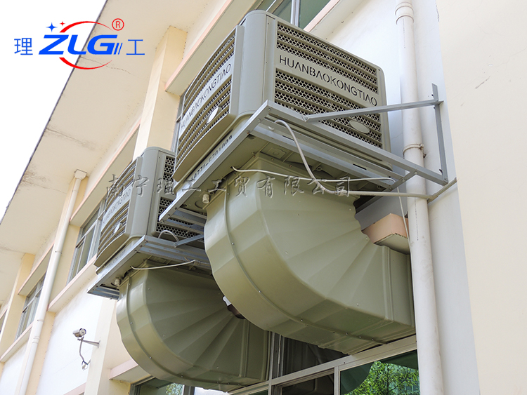 結(jié)合改超市的實際情況,選用12臺理工工業(yè)冷風(fēng)機,每臺冷風(fēng)機對接26米左右的通風(fēng)管道,采用全面降溫。