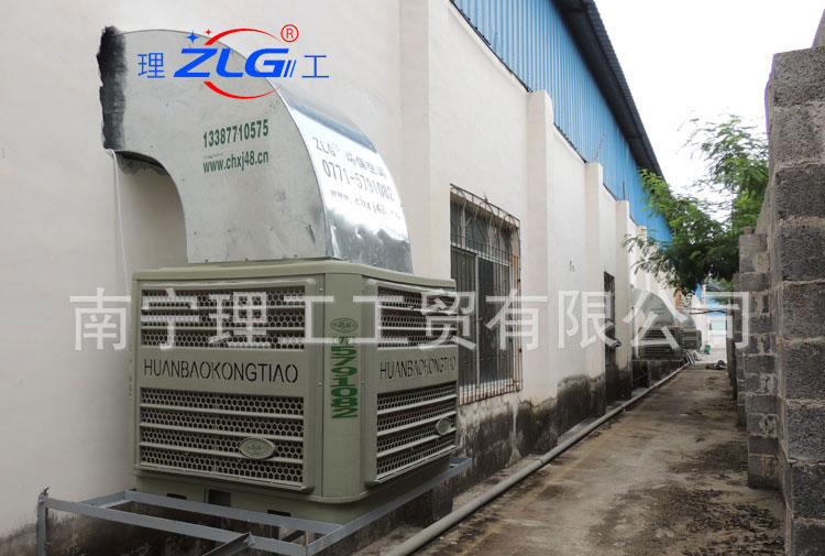 蒸發(fā)式降溫換氣機的降溫原理是:水分蒸發(fā)時帶走熱量,使得空氣的溫度降低。其工作原理是:通過風機抽風,機內產(chǎn)生負壓,空氣穿過濕簾,同時水泵把水輸送到濕簾上的布水管,水均勻地和潤整個濕簾的接觸面,而且濕簾的特殊角度使得水流直接流向空氣進風的一側,吸收空氣中大量的熱量,使通過濕簾的空氣降溫,同時得到過濾使送出的風變得涼爽、濕潤且清新。而未蒸發(fā)的水落回底盤,形成水路循環(huán),耗能更低。地盤上設置有水位感應器,當水位降落到設定水位時,自動打開進水閥補充水源,而當水位達到預定高度時將自動關閉進水閥,實現(xiàn)智能操作。其適用范圍一般應用在:制衣、紡織、機械、陶瓷、化工、冶金、玻璃、五金、皮革等制造業(yè);電鍍、電子、印染、塑料、印刷、包裝食品等加工業(yè);運動場、學校、候車室、超級商場、酒吧、網(wǎng)吧、洗衣房、廚房、菜市場、地下停車場;溫室、家禽、花卉、畜牧養(yǎng)殖場等地方。