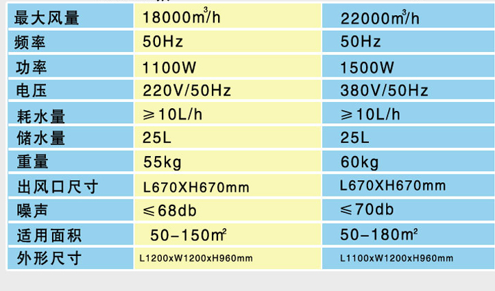 4、覆蓋面積大:每臺機冷風覆蓋面積達60-150㎡,每小時送風量達6000-18000m³,送風距離遠。